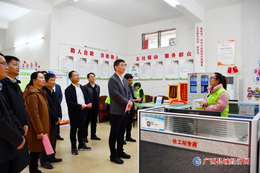 ▲王琛调研灵山县陆屋镇社会工作服务站建设运营等情况
