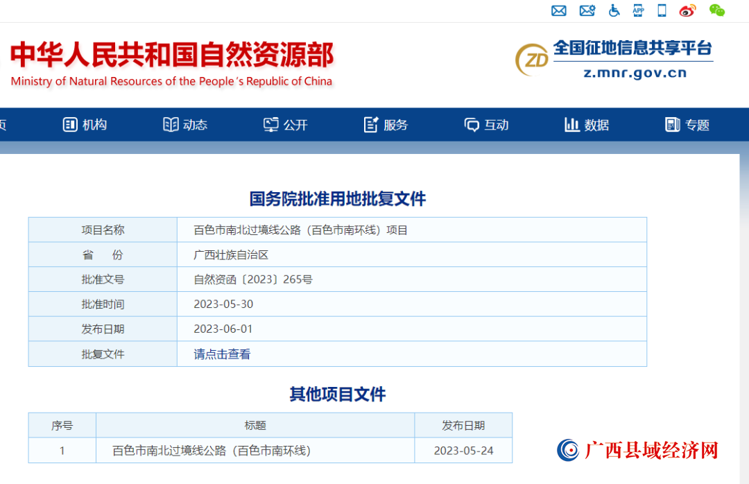 近日,百色市南北过境线公路(百色南环线)工程用地获国务院批准,获批总用地面积约3045亩。