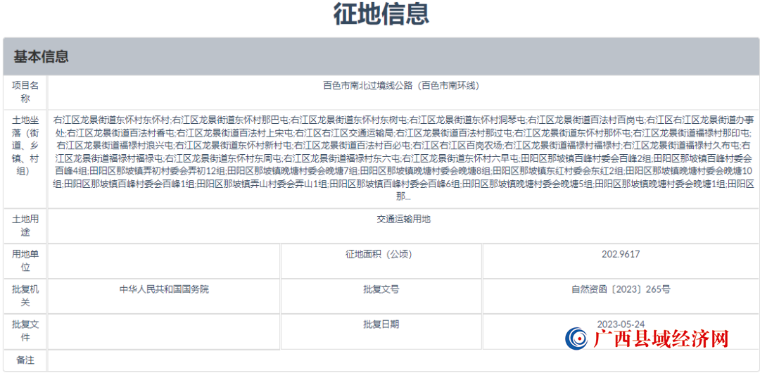 百色市南北过境线公路(百色市南环线)项目征地信息。