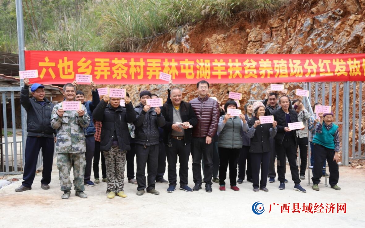 “我参加村里湖羊养殖,今天获得产业分红600元,我非常高兴。”拿到首次分红的弄劳屯脱贫户蒙善仁高兴之情溢于言表。12月11日,是大化瑶族自治县六也乡弄茶村村民们的“好日子”,全村88户村民代表集聚村里弄林屯湖羊养殖示范基地,领取湖羊养殖每户分红600元。