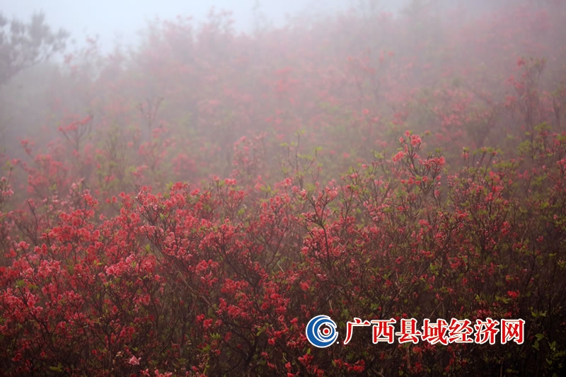 5月5日,在广西融水苗族自治县元宝山拍摄的雾里野生杜鹃花。